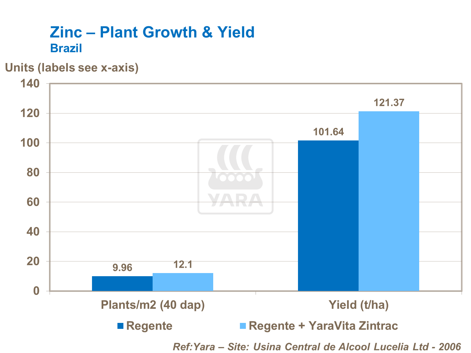 Of all the micronutrients, zinc provides the largest response in the greatest number of trials. Peak demand of zinc is during establishment and tillering, hence the strong responses seen to zinc applied impregnated on the set or directly applied to the furrow. However, high yield responses also come from foliar zinc applied to the leaf on each subsequent ratoon crop. This is largely due to its effect on early root and shoot growth and the subsequent increase in tiller numbers leading to significant yield increases in the plant and following ratoon crops. Best effects are seen where zinc is applied alongside boron.