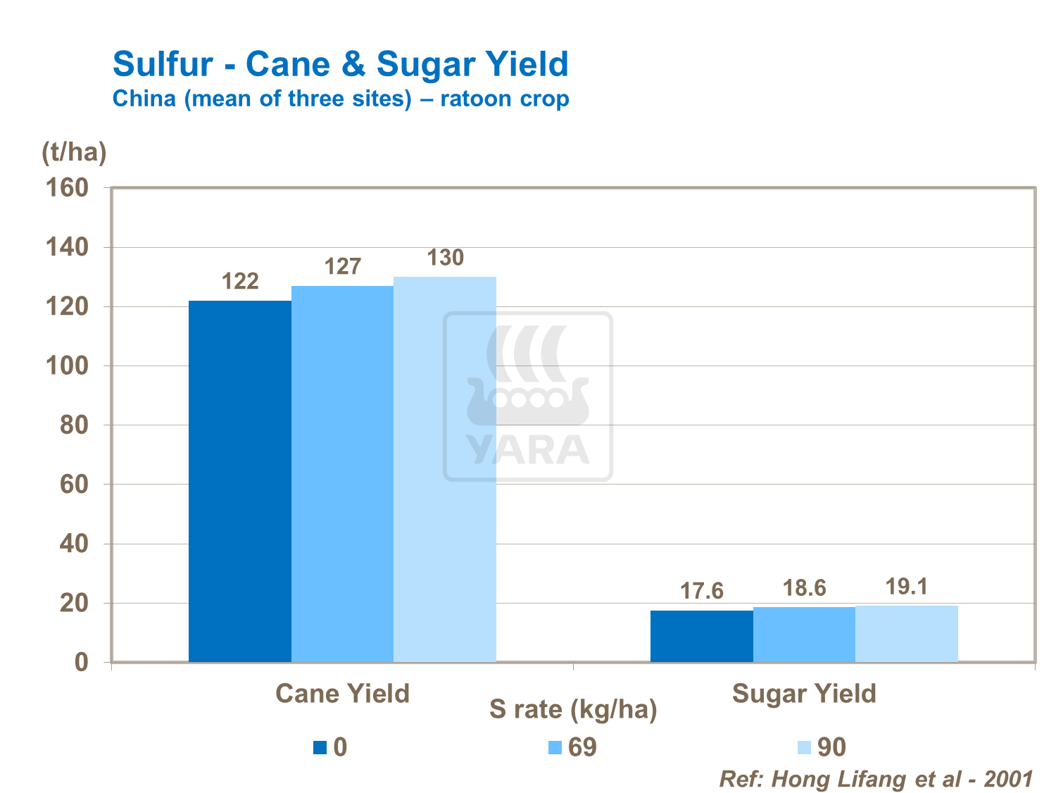 Sulfur must be applied if sugar yields are to be maintained in the sugarcane crop. Research confirms that sulfur has an effect on a range of characteristics that influence sugar quality, including Brix, Pol, juice purity and CCS.